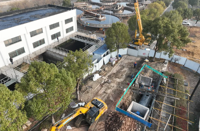 为加快项目建设进程,绍兴水处理公司科学谋划施工计划,合理调配人力物力资源,在严格落实安全施工要求的前提下,通过抢抓春节期间企业排水低峰的有利窗口,全力冲刺关键节点建设。截至目前,工程已完成1800米主要污水管道铺设,并成功与现有系统实现兜口对接。与此同时,各单体工程推进有序,稳定池底板浇筑全部完工,高效沉淀池垫层浇筑快速推进,整体建设进度已超总工程量的33%,顺利达成阶段性建设目标。