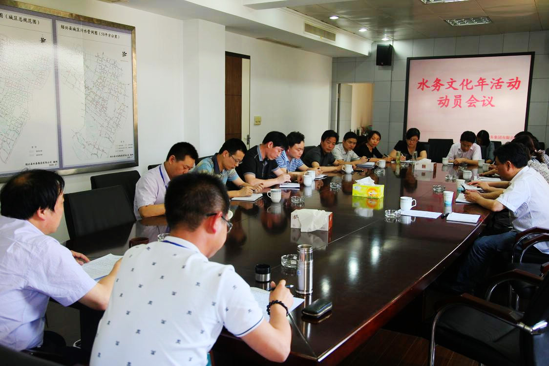 517,集团召开“水务文化年”活动动员会议,集团机关部室负责人、团委书记、妇联主席,下属公司基层党组织负责人、办公室(综合部)主任参加。会议由集团副总冯梁峰主持,集团党委副书记、纪委书记高小林做动员报告。