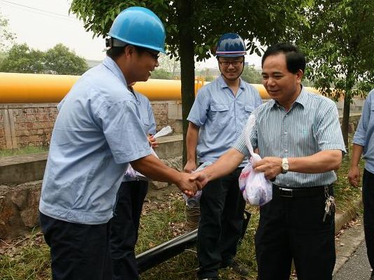 图为集团倪董事长慰问滨海供水管道安装现场员工
