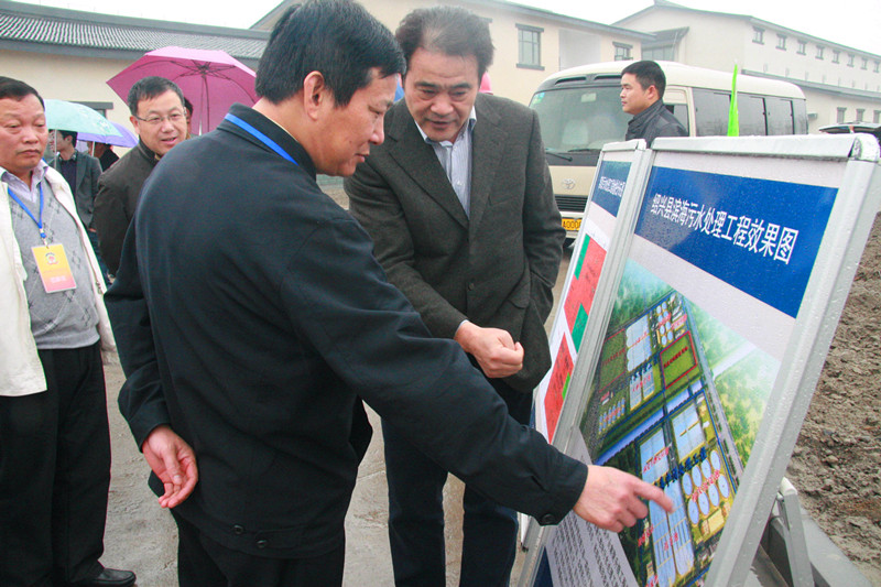 上午,县政协主席孟柏干等县政协领导冒雨视察污水集中预处理工程,集团公司党委书记、董事长倪阿泉等领导陪同。