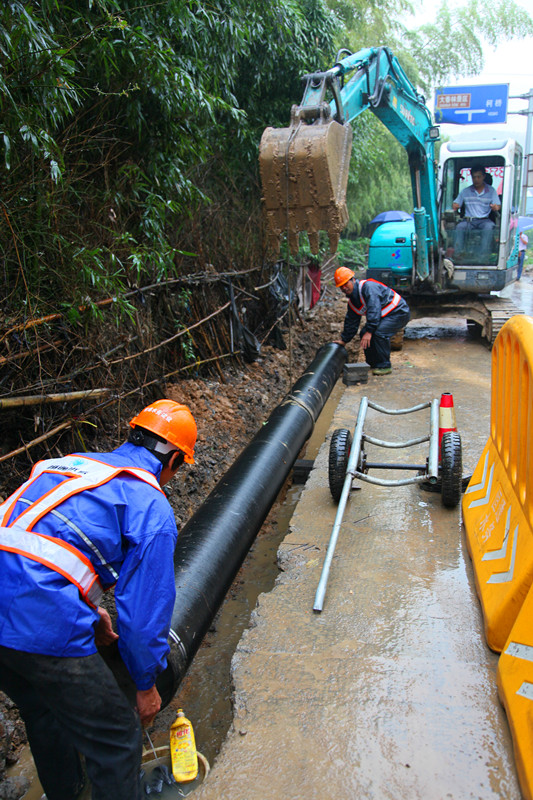 山区农村小舜江饮用水工程湖塘总管施工现场