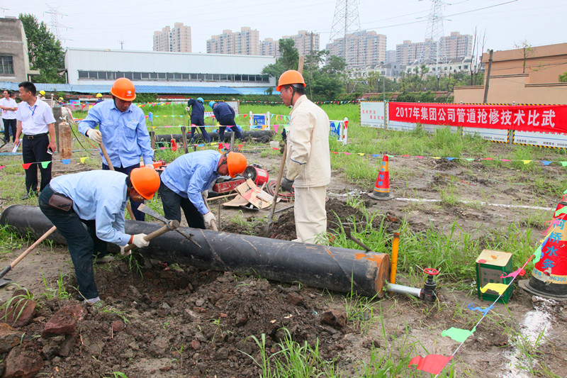 为检验和提高供水、排水和水处理等生产运营单位的管道爆管事故的应急抢修和现场操作能力,增进单位间技术交流,6月27日下午,集团公司举行了管道抢修技术比武活动。柯桥供水公司、滨海供水公司、排水公司、江滨水处理公司、绍兴水处理公司等5家供排水与水处理生产运营单位各派一支队伍参加了此次比武。