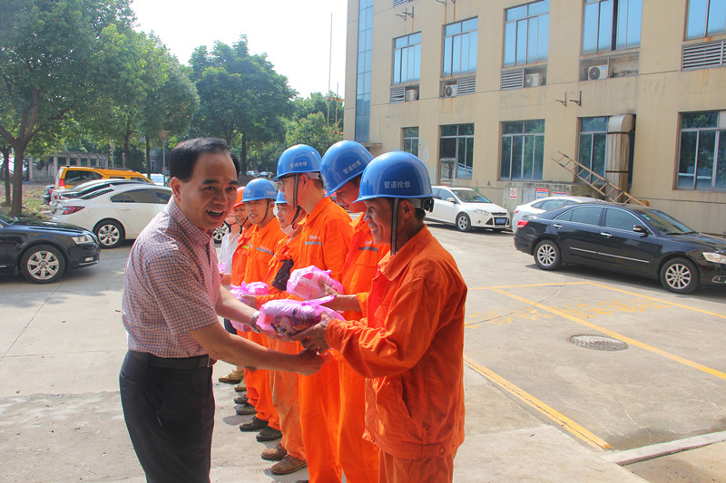 7月25日,集团组织开展高温慰问活动,集团党委书记、董事长周俭,党委副书记、总经理单宝子等领导班子成员分组深入生产建设现场,看望、慰问奋战在高温一线的广大职工,向他们为保障供排水安全运行付出的辛勤劳动表示衷心感谢,并要求相关人员要落实好高温工作的防范措施,做好防暑降温工作,确保员工身体健康,系统运行安全。