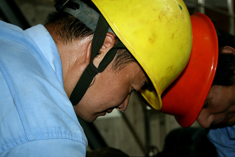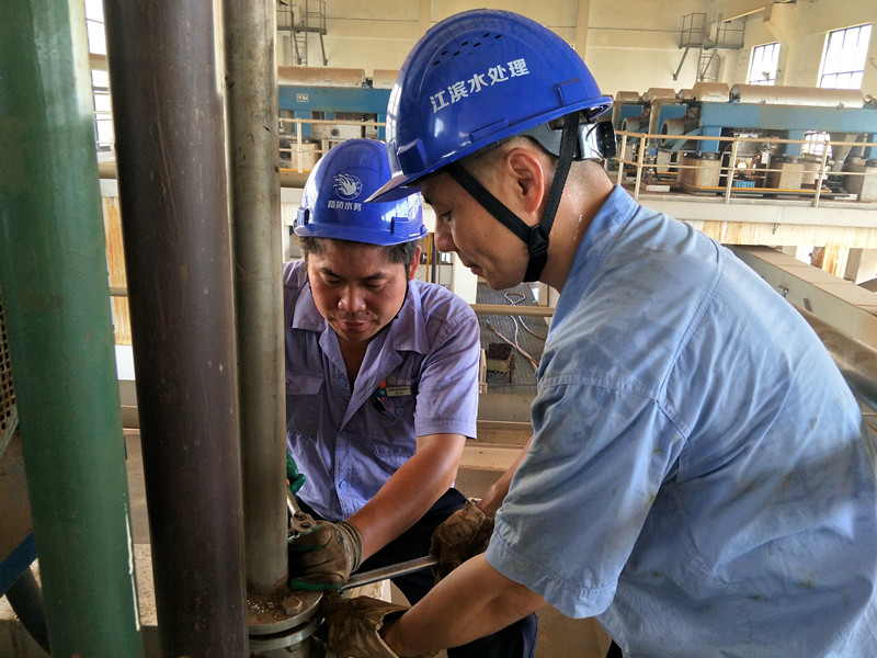 绍兴水处理公司维修人员为了抢修设备,汗流浃背。