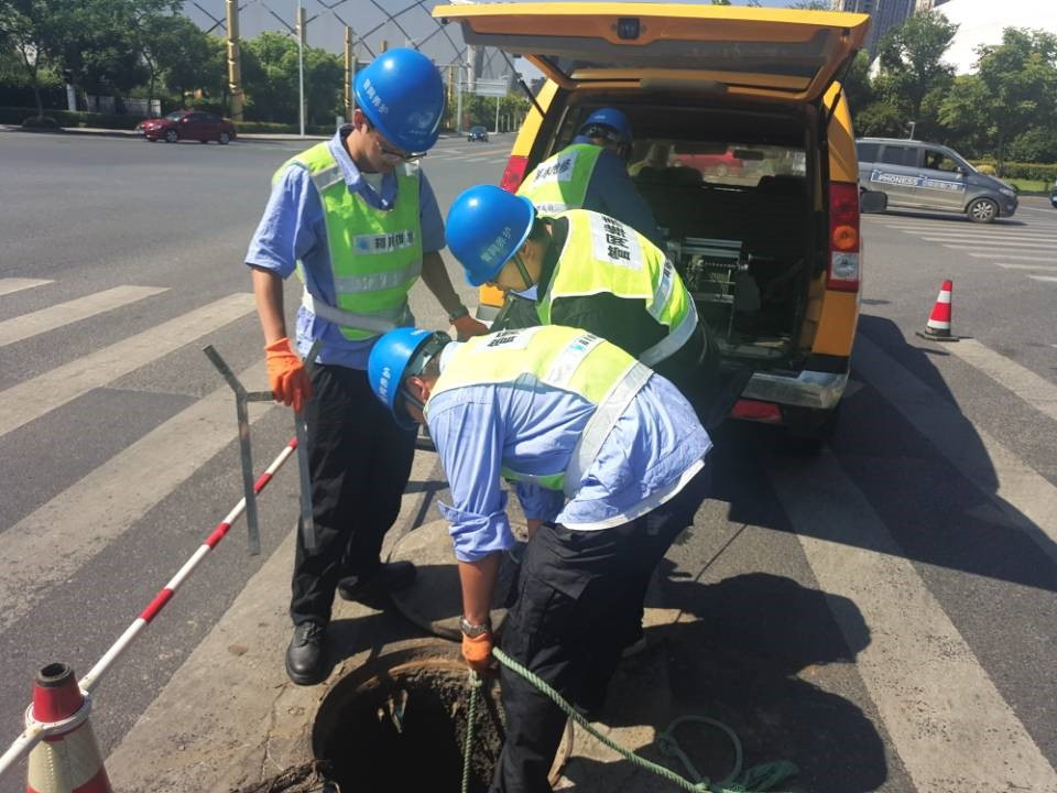 为了保证雷暴天气不对路面造成影响,排水公司养护班同志们对管道一一检测。