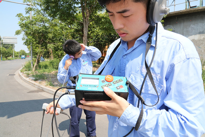 滨海供水公司检漏员顶着烈日一路听漏。