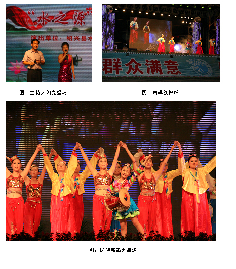 晚,柯桥明珠广场上灯火璀璨、歌声激扬、舞者翩翩,由绍兴县水务集团团委承办的“水之源”主题广场晚会正精彩上演。本次晚会,以水为纽带,通过水务系统职工自编自导贴近百姓、展示水务风采的节目,将水务人真心、真诚服务社会、服务百姓的工作理念淋漓尽致地展现在广大市民面前,使百姓与水务人之间的距离拉得更近,变得更为亲密。共有600多名水务系统的职工和1000多名的群众观看了本场演出。