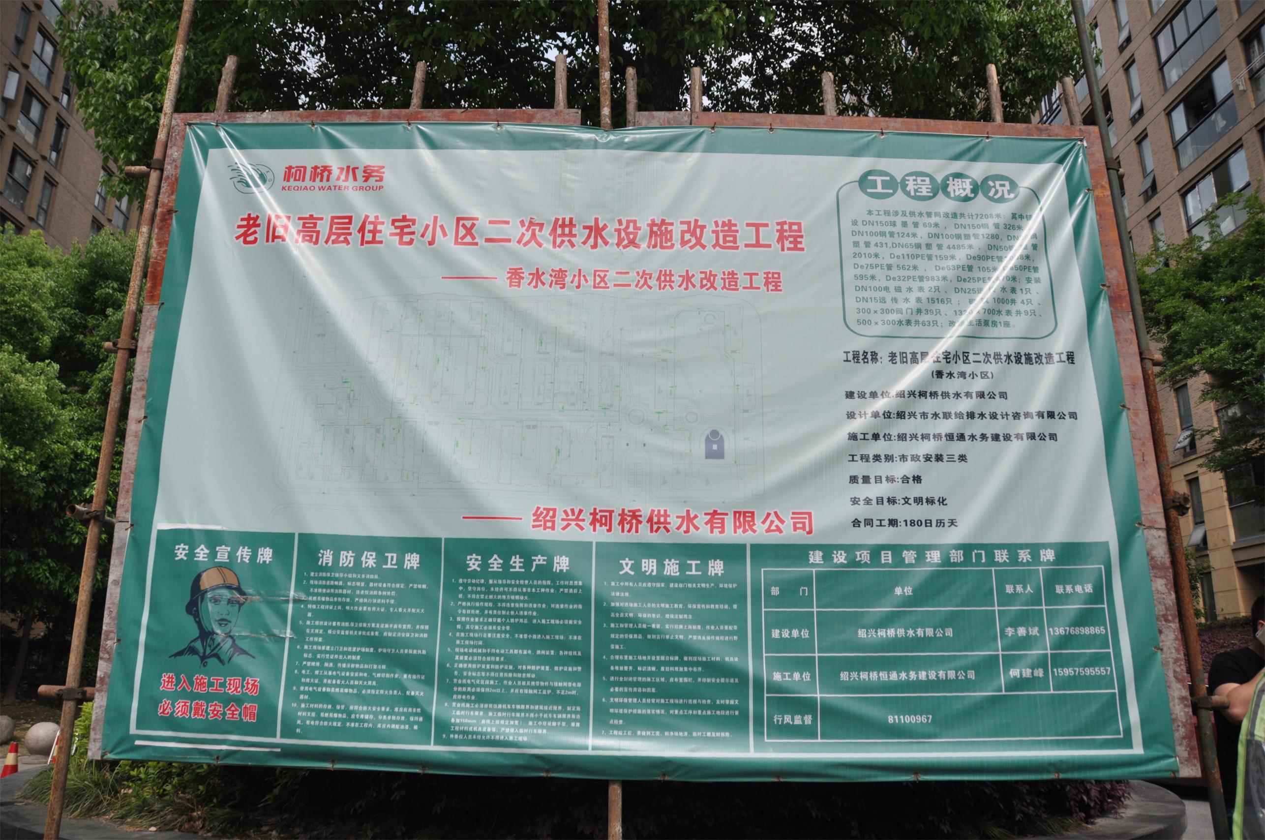 为确保2017年柯桥城区高层住宅小区二次供水设施改造工程顺利推进,近日,公司充分利用LED电子屏、宣传窗等载体,通过在改造中的8个小区大门入口悬挂巨型工程概况牌、在小区LED大屏幕滚动播报改造信息、在宣传栏和单元楼门口张贴改造宣传海报等措施,全方位、多角度、广渠道宣传工程概况和改造进度,公开工程状况,提升群众的参与度,通过公开沟通,取得群众理解支持,从而进一步推动工程顺利进行。