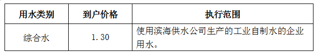 滨海工业区综合水水价收费标准